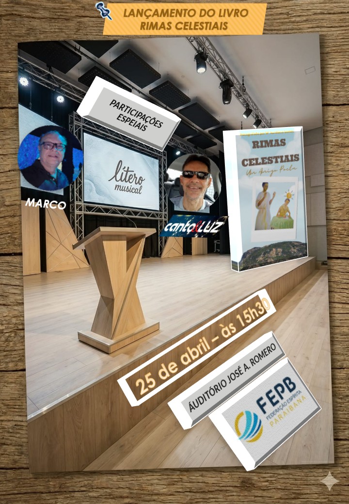 Convidamos a comunidade espírita para o Show Lítero-musical de lançamento do livro RIMAS CELESTIAIS, do Amigo Poeta – Inácio da Catingueira… Entrada gratuita!